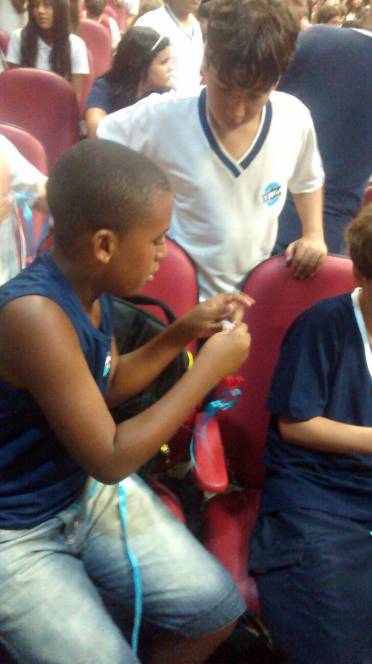 Uma manhã de encontros e reencontros no teatro do colégio onde, além de conhecerem o corpo docente, desenvolveram dinâmicas de integração com o tema "O laço e o abraço". Fitas coloridas deram o tom diferente ao serem enlaçadas num grande e fraterno abraço.