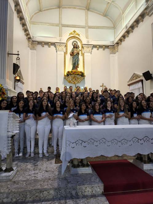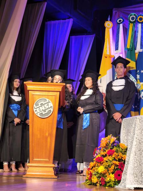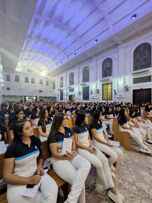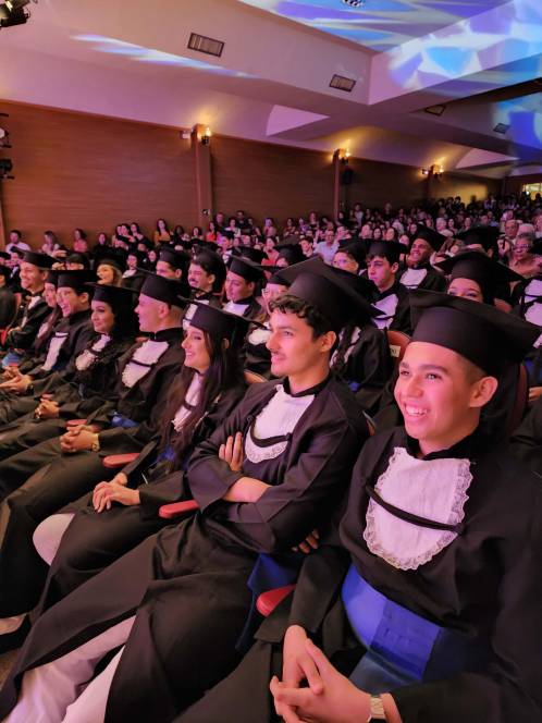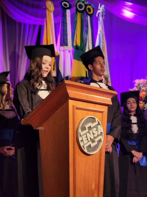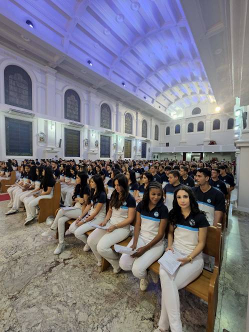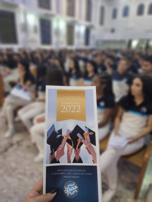 Em grande estilo, o Terceirão 2022 do CENSA comemorou a conclusão do Ensino Médio, na segunda-feira, 12 de dezembro. A noite começou com uma Missa em Ação de Graças, na capela da instituição. Reunindo direção, professores, alunos e familiares, a celebração foi marcada pela gratidão a um tempo de grande crescimento e valiosas experiências. Após a liturgia, os participantes seguiram para o teatro, para a solenidade de entrega dos certificados de conclusão de curso. Muito emocionados, os alunos relembraram grandes momentos vividos na escola, ressaltando as amizades e os valores conquistados ao longo dos anos, na instituição. Juramento, homenagens, discursos e a entrega dos canudos concluíram a noite. Mais uma geração que se despede da escola, levando consigo a marca da juventude salesiana.