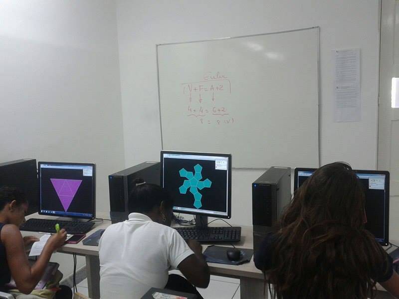 As turmas 211 e 311 utilizaram o software Poly, uma criação Pedagoguery Software, que permite a investigação de sólidos tridimensionalmente com possibilidade de movimento e, dimensionalmente, a partir de suas planificações e da vista topológica. Ele está disponível em ftp://ftp.peda.com/poly32.exe.