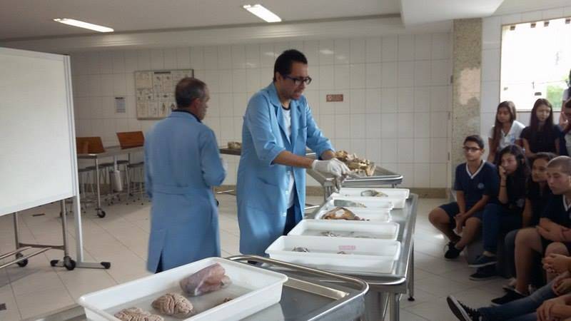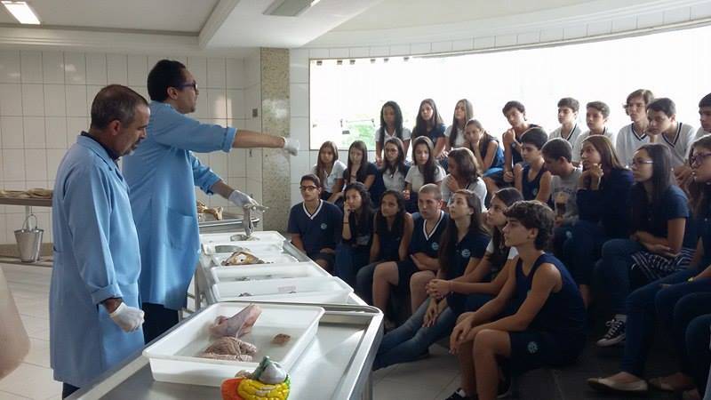 Os alunos do 9º ano tiveram a oportunidade de aprender sobre a anatomia humana, os principais órgãos do corpo humano, o funcionamento e a interação entre eles. Fizeram um passeio pelo sistema nervoso, cardiorrespiratório, urinário, reprodutor, observaram algumas doenças apresentadas nas peças anatômicas para entender a importância da medicina legal na investigação da causa morte.