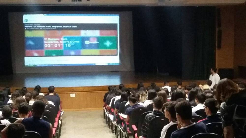 Os alunos do Censa participaram de um aulão ao vivo para todo o Brasil, na manhã de 11 de maio, com o professor William Gabriel, da plataforma Descomplica. O professor, que falou sobre o Segundo Reinado - História do Brasil, aproveitou a oportunidade para homenagear o Auxiliadora, onde também dá aulas para os 1º e 3º anos do Ensino Médio.