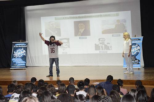 O Auxiliadora promoveu mais um aulão para os alunos do Ensino Médio. Desta vez, o foco foi o ENEM e o evento, que aconteceu no dia 29 de outubro, contou com aulas multidisciplinares: biologia, literatura, história, química, matemática, redação e física. Foram 450 inscrições para um dia inteiro dedicado às questões relevantes do processo seletivo que reúne candidatos de todo o país em busca de uma vaga na universidade. Numa abordagem dinâmica e lúdica, os renomados professores à frente do encontro revisaram os conteúdos com os atentos alunos do CENSA e de outras instituições que também participaram. Foram, ainda, sorteadas bolsas de estudo no ISECENSA, assinatura no site Descomplica e vários brindes. Gratuito, o aulão solicitou a doação de 1kg de alimento como inscrição e o total arrecadado chegou a meia tonelada. Tudo será doado à instituições beneficentes e comunidades carentes da cidade.