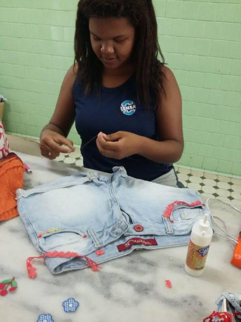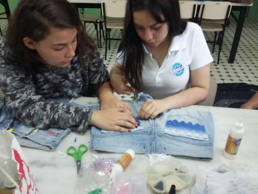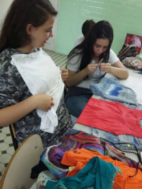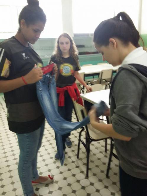 A adesão dos alunos foi total. Além das contribuições para o lanche (1º ano), kit estudantil com lápis, borracha, canetinhas etc (2º ano), os alunos usaram a criatividade e partiram para a customização de roupas. Doadas pelos próprios, a garotada deixou a imaginação aflorar e pegando em linhas e agulhas deram um novo colorido às peças. As mesmas serão apresentadas num desfile, programado para o dia do encontro, e depois vendidas num bazar. A renda será revertida para a compra de vermífugos para as crianças moradoras na Comunidade.