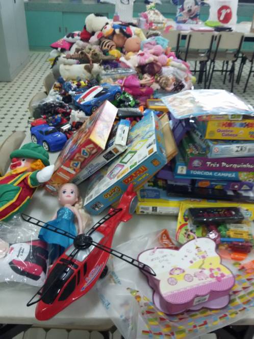 Todo esse entusiasmo contagiou os outros segmentos e o Ensino Fundamental I e a Escola Infantil também quiseram participar. Sendo assim, os alunos do 1º ao 5º ano ficaram responsáveis pela doação dos alimentos da cesta básica e o pequenos, pelos brinquedos.