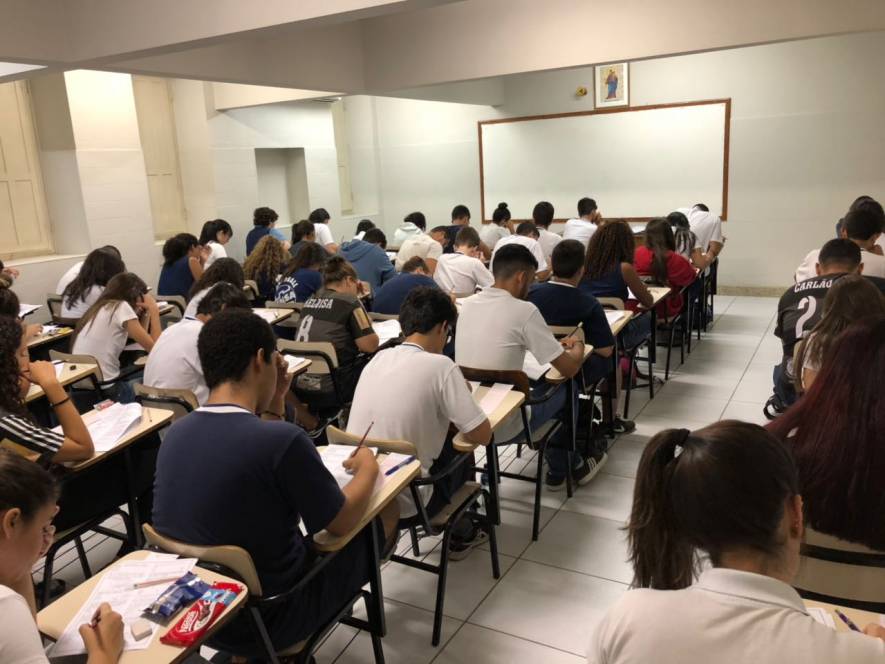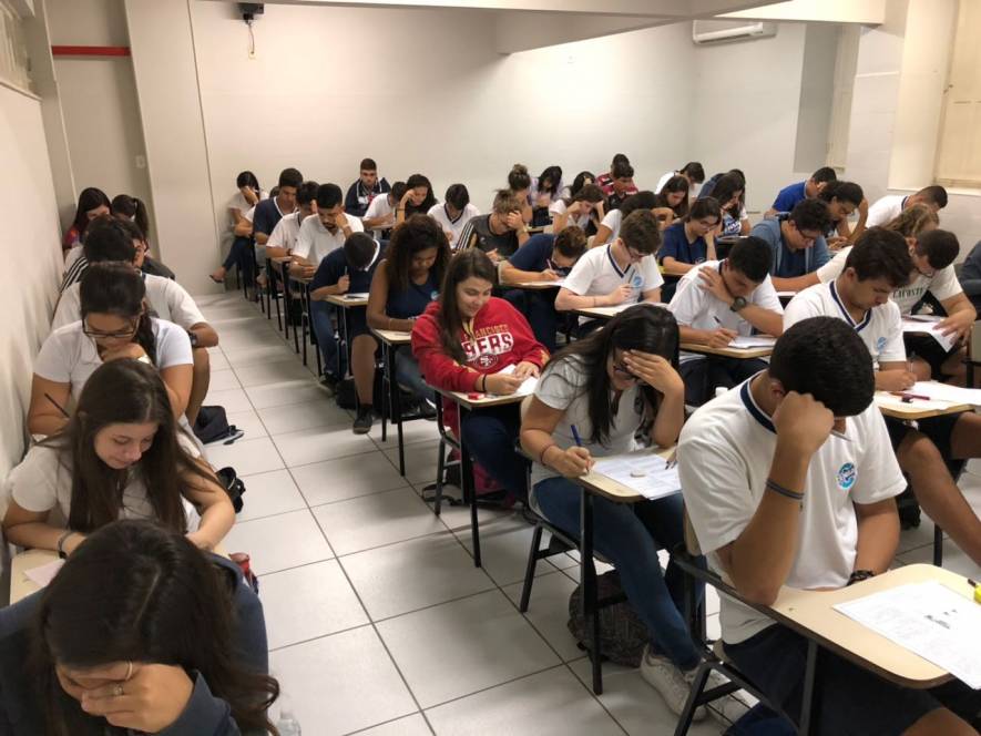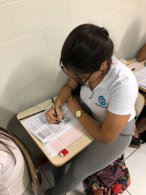 Já no clima de vestibular, o 3º ano do Ensino Médio do CENSA realizou seu primeiro simulado de 2018, na terça-feira, 13 de maio. Foram 60 questões objetivas tendo como modelo o Exame de Qualificação da UERJ. Com vários outros já agendados, os alunos ainda conhecerão as provas aplicadas pelo ENEM e faculdades particulares de Medicina.