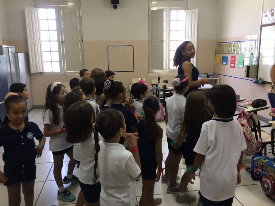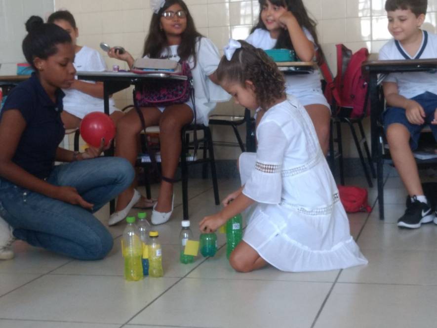 As alunas são orientadas pela Professora de Prática de Ensino, Criscilamara das Neves, e pela coordenadora de matemática do segmento, Fernanda Monteiro