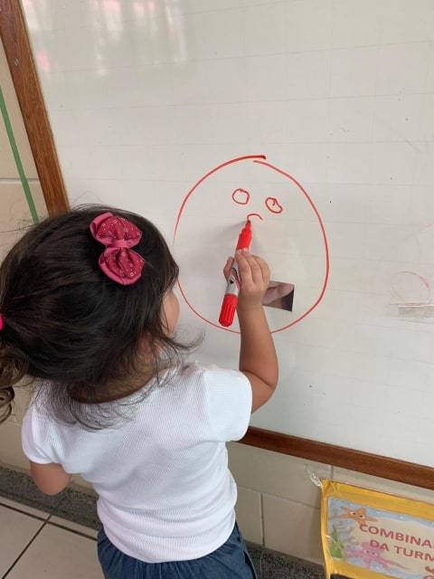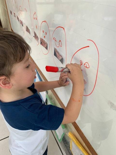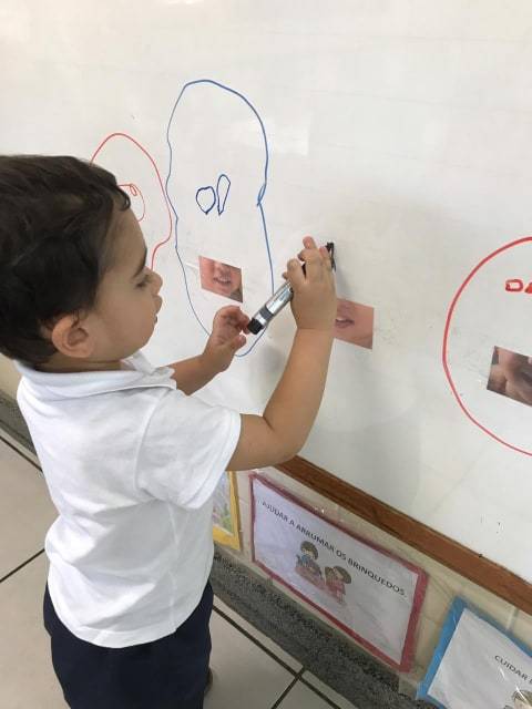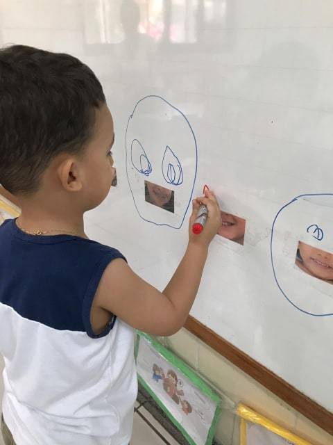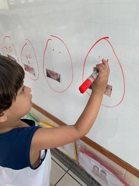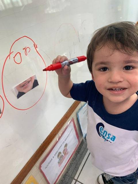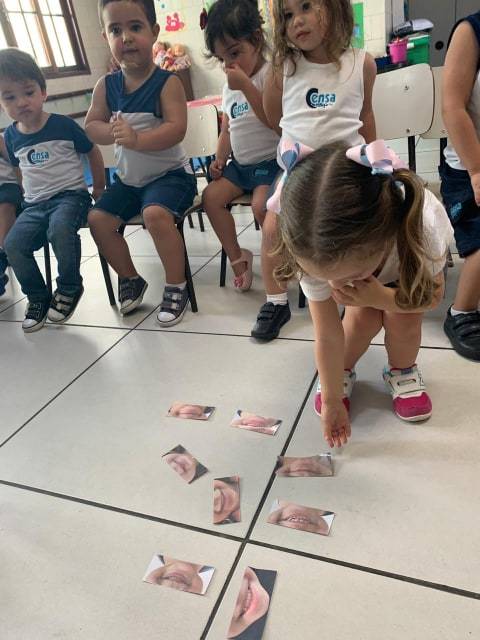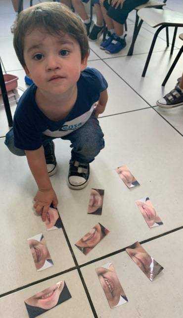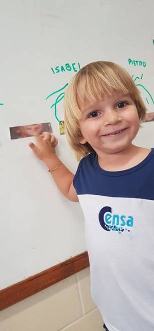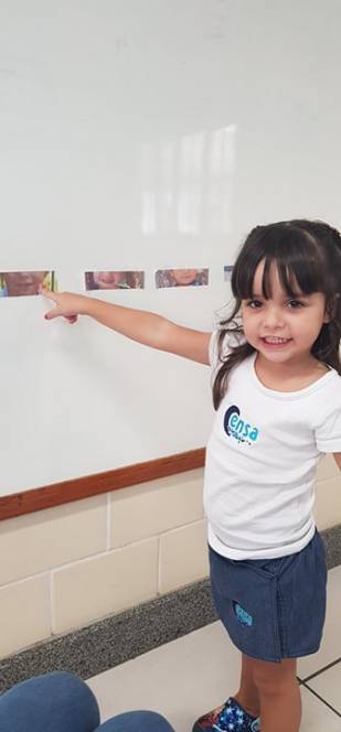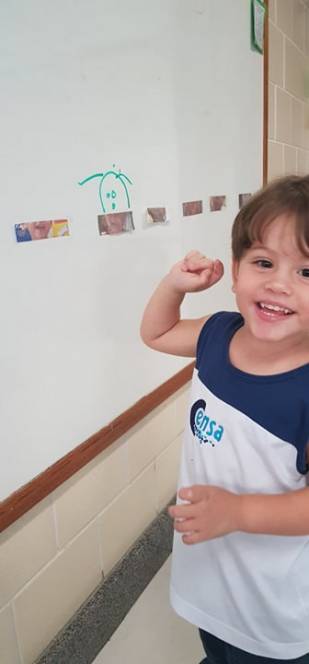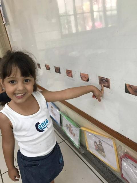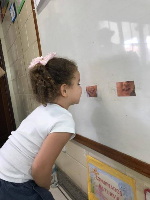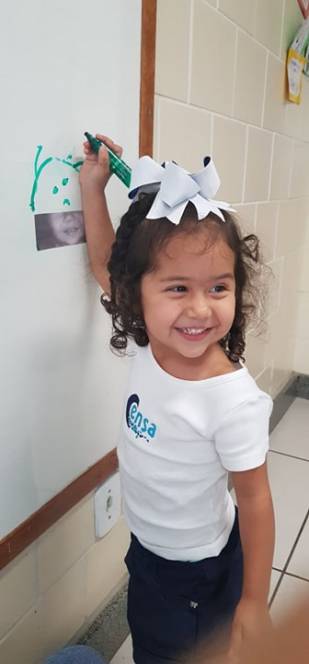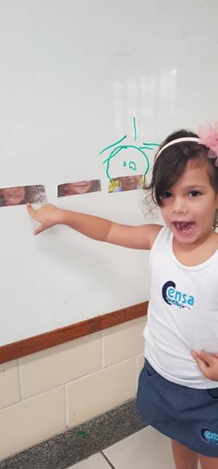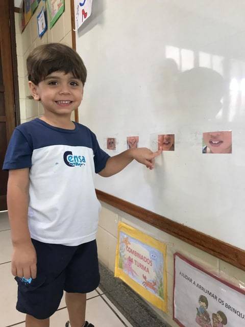Os pequenos do maternal do Censa participaram de uma dinâmica muito significativa, no dia 20 de setembro . Com o objetivo de desenvolver a identidade e a autonomia, as crianças foram desafiadas a olharem-se no espelho, dançar, fazer caretas e reconhecer partes do próprio corpo e dos amigos. O segundo passo foi identificar qual era a foto do próprio sorriso e, à medida que fossem encontrando, deveriam realizar o autorretrato no quadro.