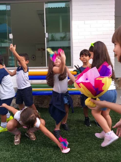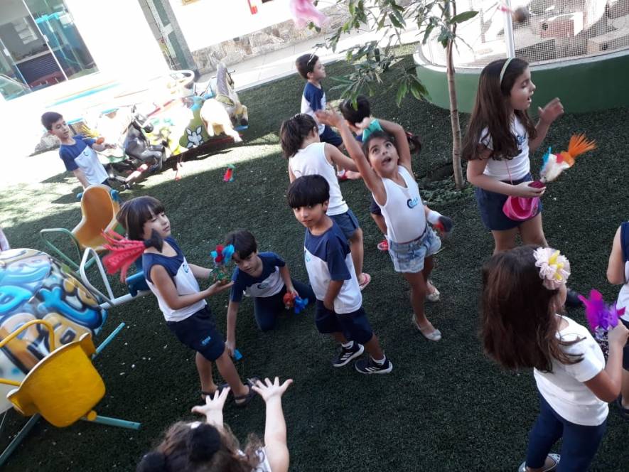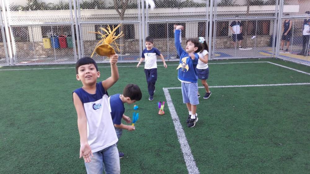 Estudando a letra P, o 3º período da Escola Infantil do CENSA recebeu um desafio como atividade de casa: construir uma peteca usando materiais reutilizáveis. Segundo Liliana Nogueira, coordenadora do segmento, "o objetivo foi promover um aprendizado dinâmico, contextualizado e cheio de significado para as crianças".