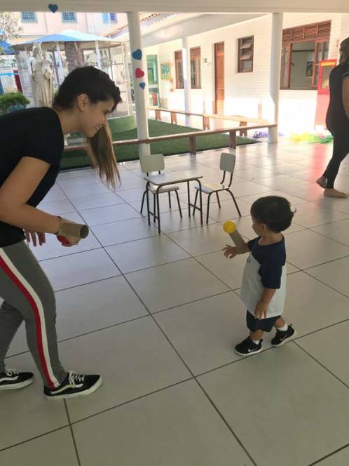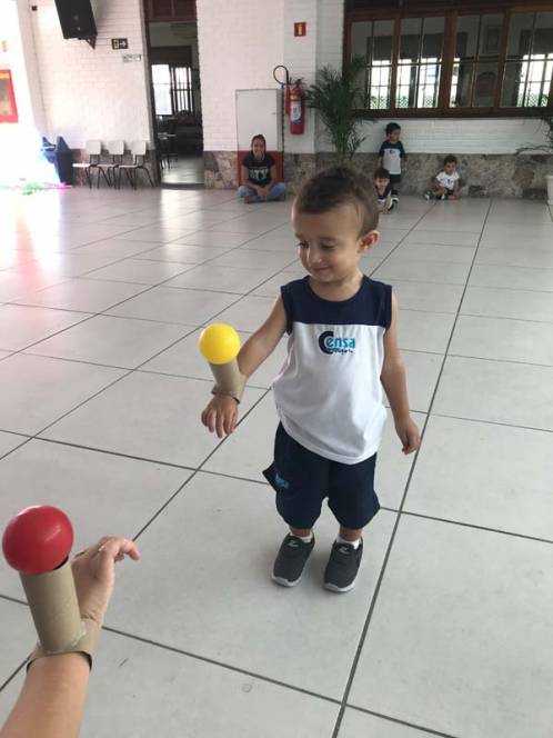 Trabalhando a concentração e o equilíbrio, os pequenos do Pré-maternal da Escola Infantil do CENSA participaram de uma interessante atividade na sexta-feira, 31 de maio. Recebendo das professoras uma pulseirinha com um rolinho de papel, a proposta era andar sem deixar a bolinha cair. Muito concentrados, os alunos adoraram a dinâmica e fizeram da brincadeira uma momento rido de aprendizagem.