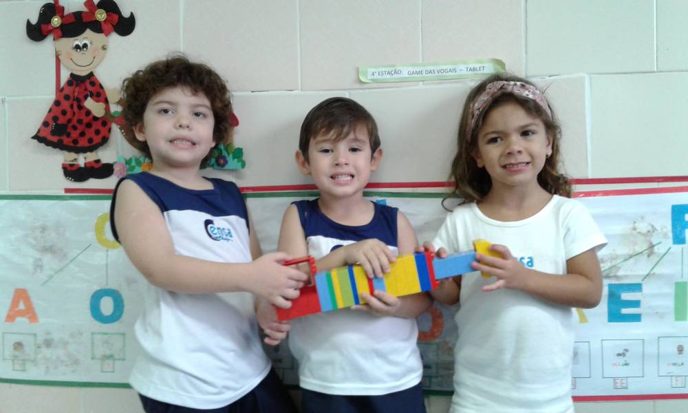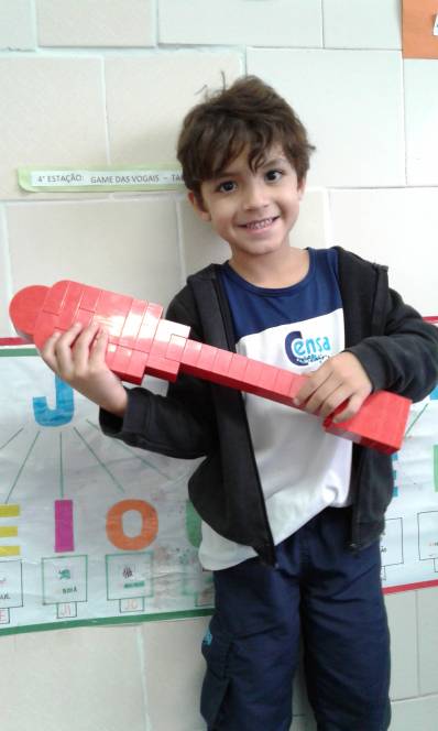 Preparando-se para entrar na unidade 4 do Programa Bilíngue da International School, "Let's start a band!", o 2º período da Escola Infantil do CENSA construiu seu próprio violão, na aula de 19 de junho. Para a atividade, foi utilizado o LEGO como ferramenta hands on, com a criançada montando seu guitar sob sua própria perspectiva óptica e aprendendo as características do instrumento.