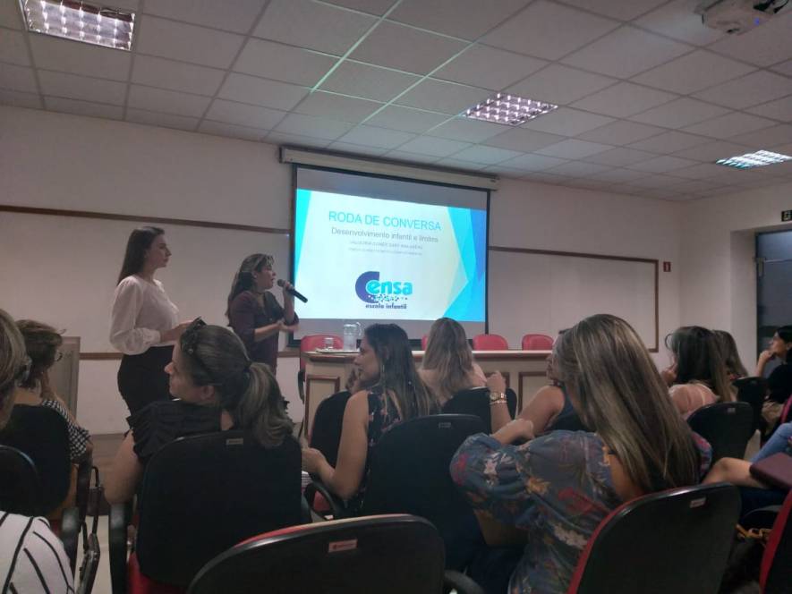 A Escola Infantil do CENSA promoveu uma Roda de Conversa para os pais, na quarta-feira, 26 de junho. O encontro teve à frente a fonoaudióloga Marta Arêas Poltronieri e a psicóloga comportamental Valquíria Areas. As profissionais abordaram a importância da presença qualitativa dos pais na educação, nas tarefas cotidianas e no estímulo à linguagem comunicativa das crianças e ressaltaram a urgência em limitar o uso de eletrônicos na faixa etária de 0 a 6 anos. Atentos à temática, os pais participaram e aproveitaram a ocasião para tirar dúvidas.