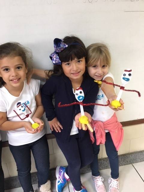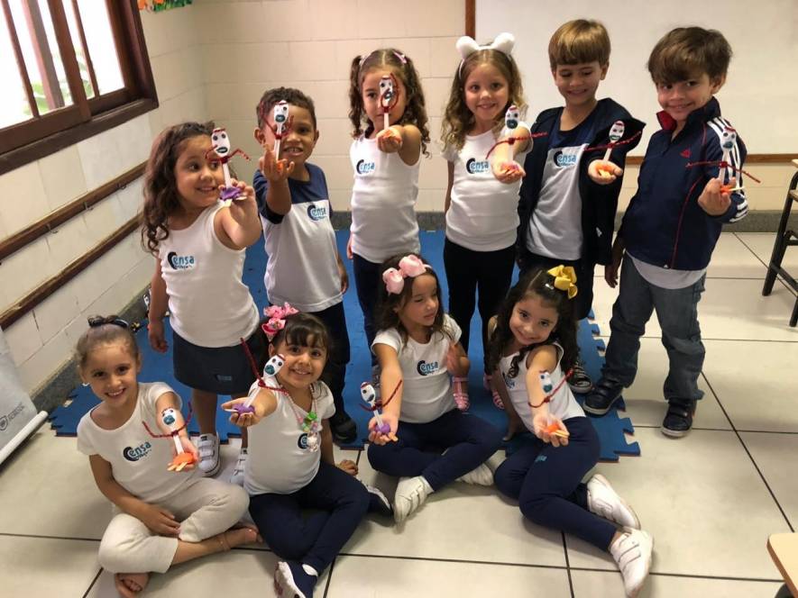 Cheio de energia,o 2º período da Escola Infantil do CENSA retornou às aulas colocando a mão na massa. Ainda com alegres lembranças do passeio ao cinema promovido pela escola, quando assistiram ao Toy Story 4, a garotada construiu o personagem Bonnie utilizando materiais reutilizáveis.