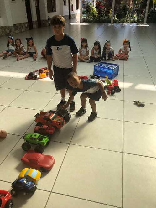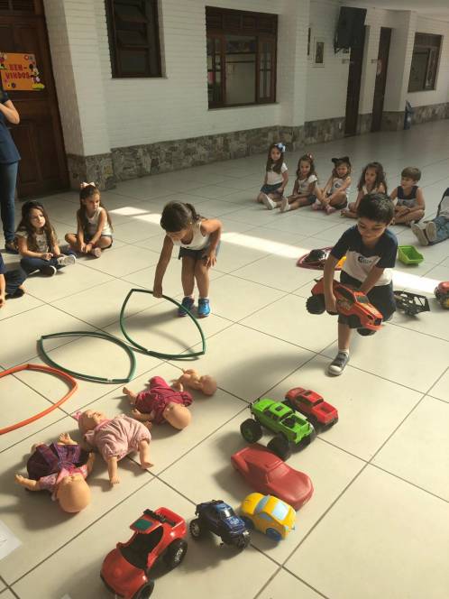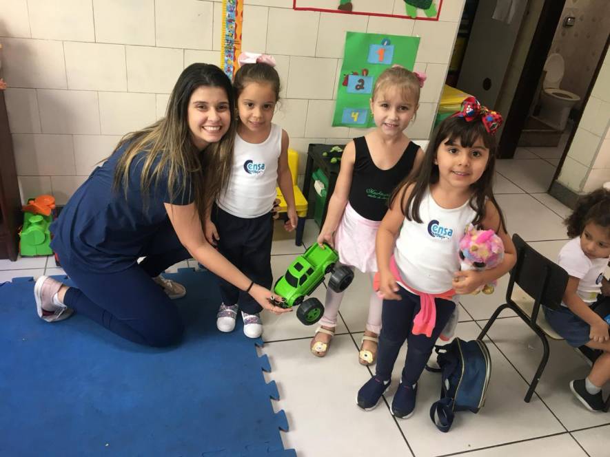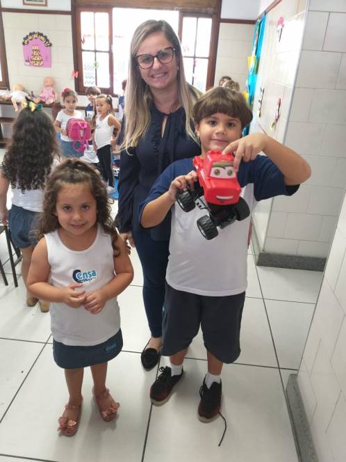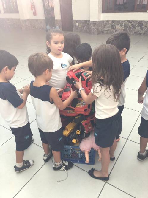 Envolvido no Projeto "Eu quero ou eu preciso? Consumo consciente!", o 2º período da Escola Infantil do CENSA foi em busca de brinquedos avariados, na tarde de 31 de julho. De sala em sala, a criançada recolheu bonecas, carrinhos e vários outros brinquedos.No dia seguinte, reunidos na área central da escola, selecionaram os que poderiam ser consertados e reutilizados ou doados para uma instituição que atende crianças carentes.