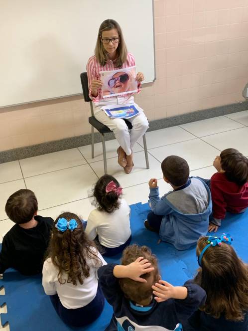 O Maternal da Escola Infantil do CENSA recebeu uma visita super especial na quarta-feira, 21 de agosto: Dra. Fernanda Cesário. Oftalmologista, a convidada trouxe muitas informações para os pequenos que desenvolvem o Projeto dos Sentidos. Uma manhã de muito aprendizado!