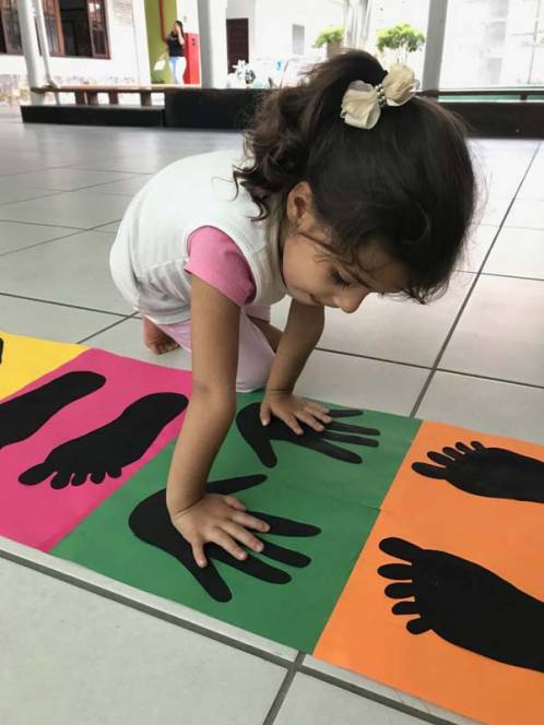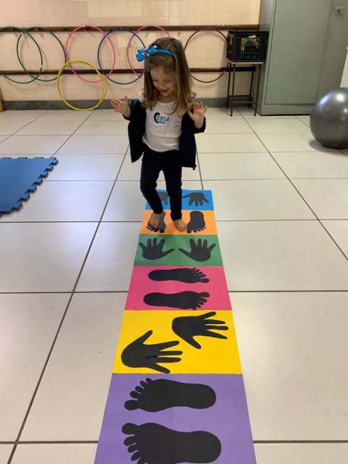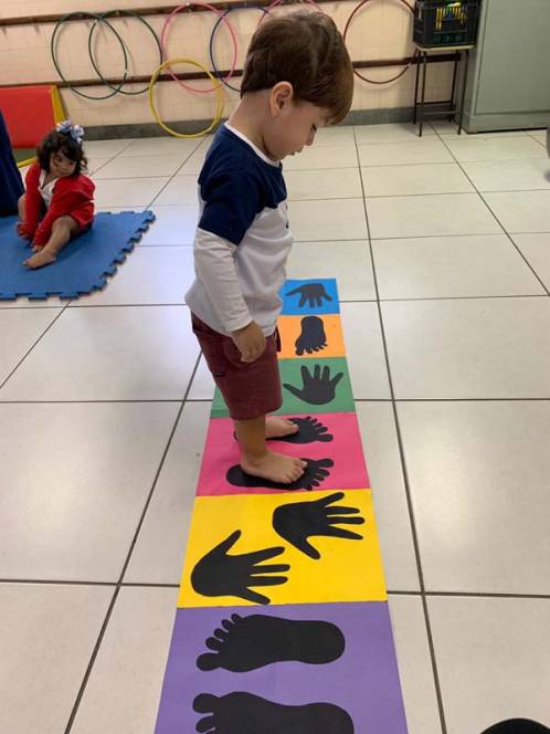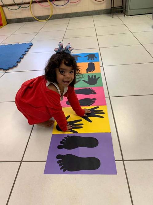 A criançada do maternal da Escola Infantil do CENSA se divertiu no tapete da lateralidade, na segunda, 26 de agosto. A proposta era acompanhar a posição das mãos e pés do tapete, com o apoio do próprio corpo. Enquanto se divertiam, os pequenos desenvolveram a coordenação e o equilíbrio motor, estimulando a concentração e a atenção.