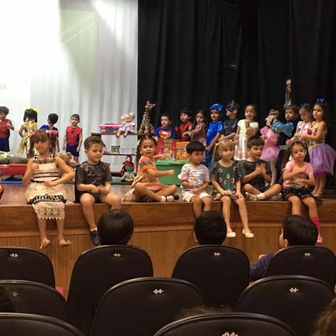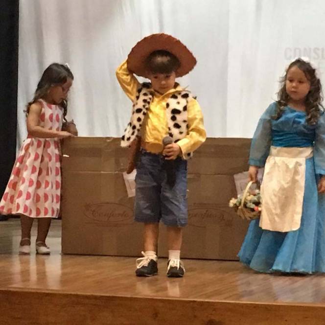 Em mais uma dinâmica do projeto "Eu quero ou eu preciso?", o 2º período da Escola Infantil do CENSA assistiu um pequeno vídeo do Toy Story, na tarde de 2 de setembro. A partir da temática do filme, os alunos apresentaram um teatro com os personagens Andy, Xerife Woody, Betty e Bonnie incentivando a doação de brinquedos em bom estado para o abrigo Renascer.