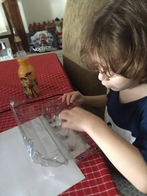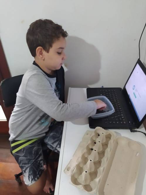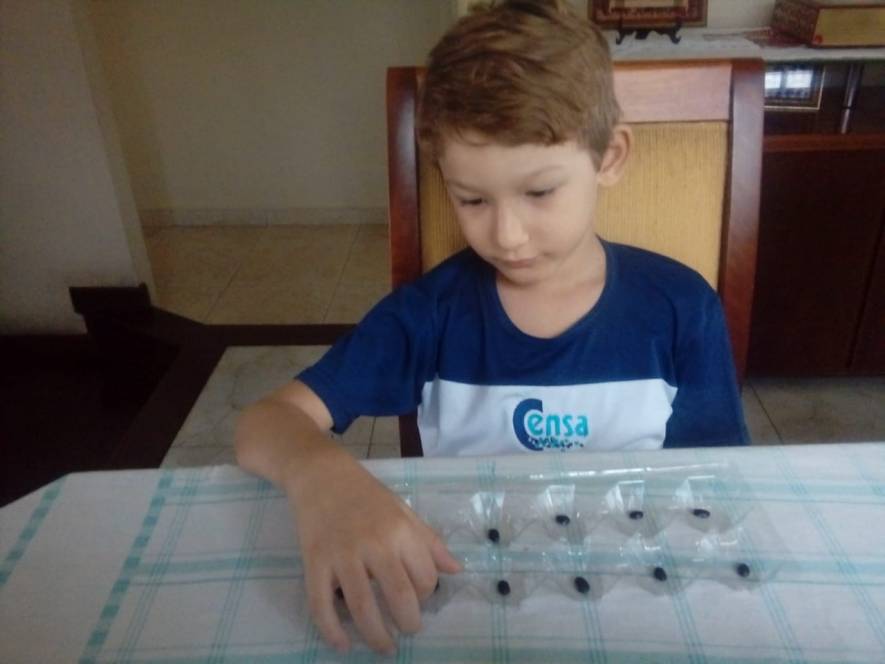 O 3º período da Escola Infantil do CENSA partiu de elementos do cotidiano para construir os conceitos de dúzia e dezena. Participando de aulas on line, a criançada utilizou bananas, ovos, laranja e vários outros produtos disponíveis em suas casas para diferenciar o tema estudado.