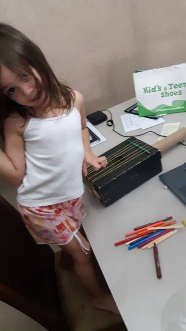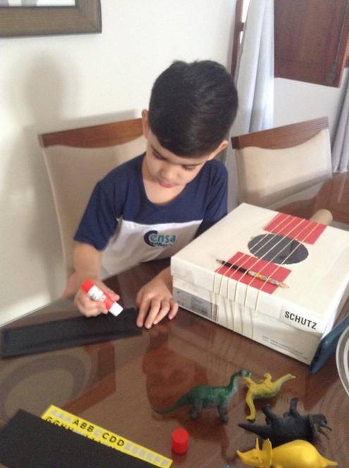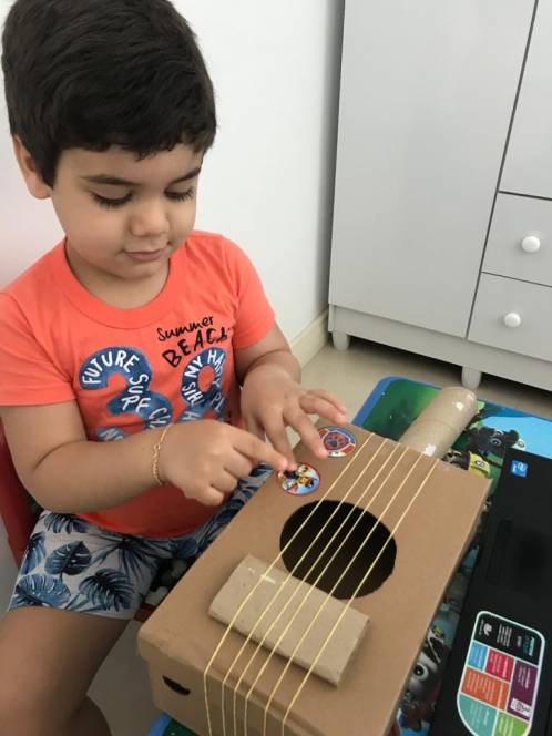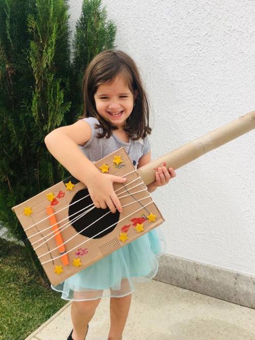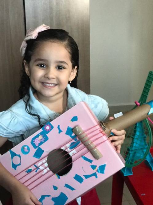 Segunda-feira, 20 de julho, foi dia de rock para o 2º período da Escola Infantil do CENSA. Durante as aulas do Programa Bilíngue, a criançada aprendeu o vocabulário e as características de vários instrumentos musicais e, como é de costume, partiu para o momento maker, construindo uma guitar utilizando materiais como a shoe box, wool or rubber bands, glue, scissors, a paper towel roll, adhesive tape, toilet paper roll or an old pencil.