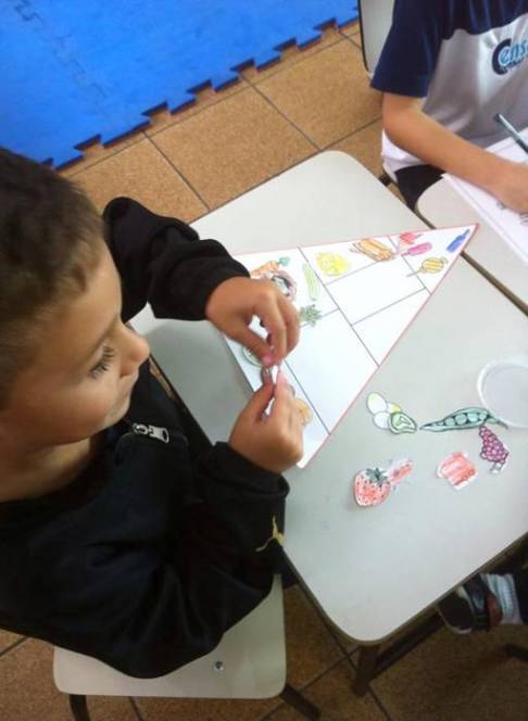 Alunos do horário complementar trabalham a pirâmide alimentar.