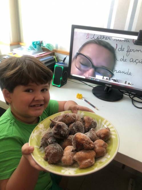 Conhecendo um pouco sobre o folclore brasileiro, o 1º ano fundamental do CENSA entrou no mundo do Sítio do Picapau Amarelo, de Monteiro Lobato. Dentre os muitos e ricos personagens da obra, os pequenos focaram na tia Nastácia e suas delícias. Vislumbrando uma atividade lúdica e participativa, partiram para os famosos bolinhos de chuva, registrando a receita em seus cadernos de produção de texto e literalmente colocando a mão na massa, fazendo deliciosos bolinhos.