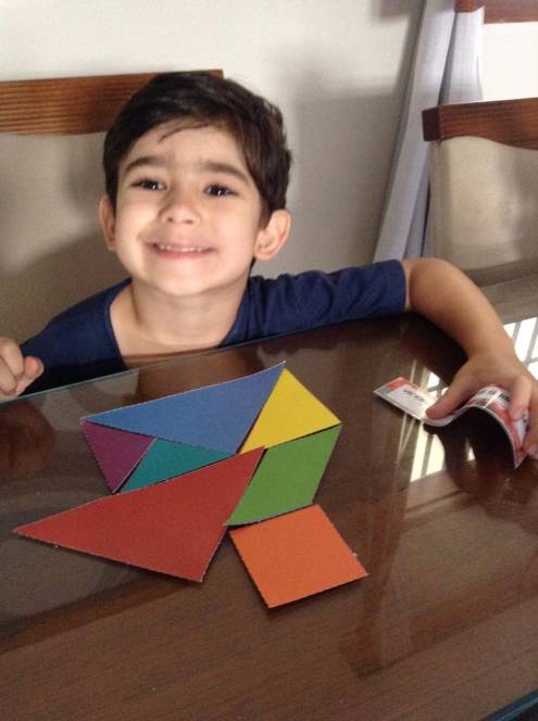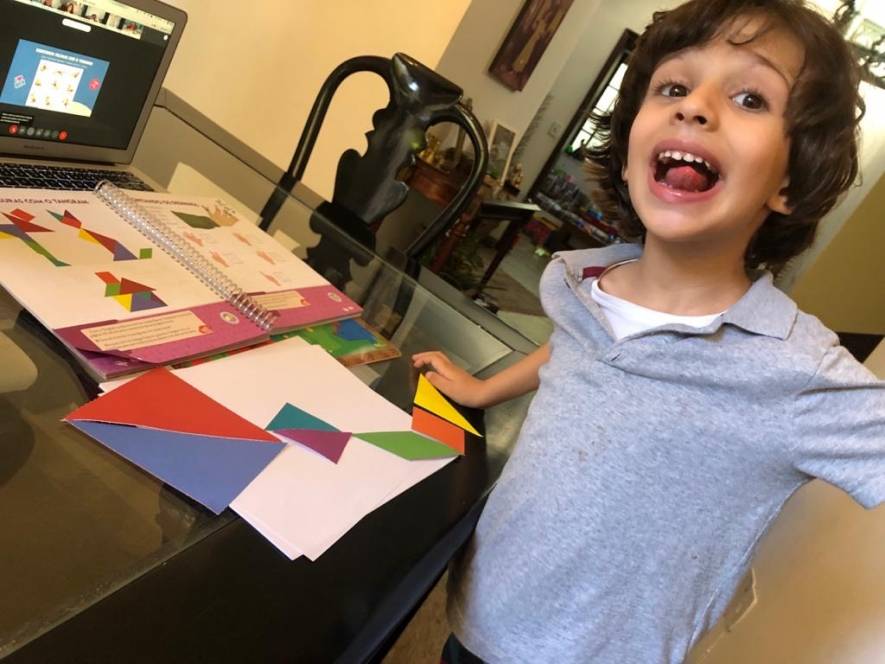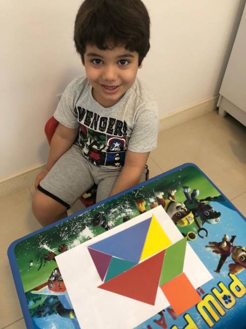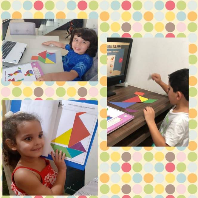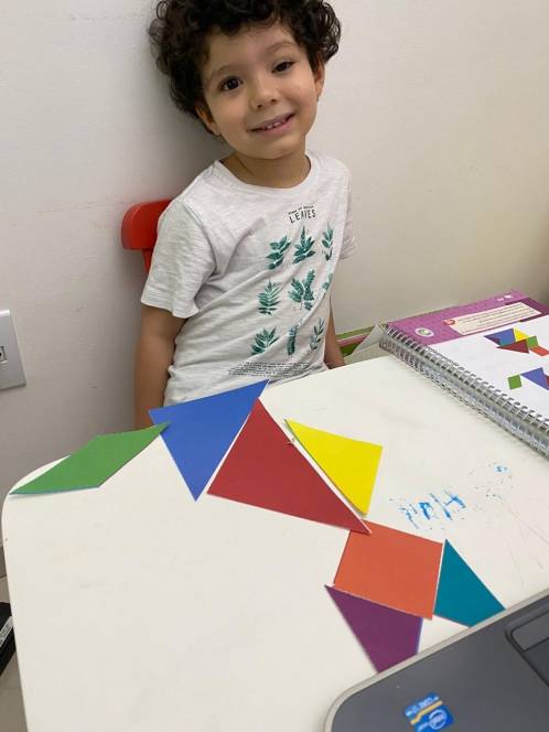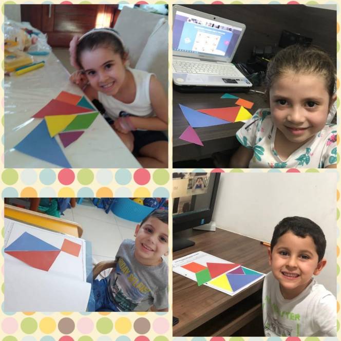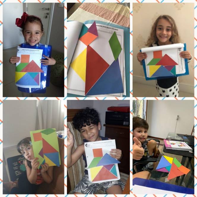O 2º período da Escola Infantil conheceu o Tangran, na aula virtual de 18 de agosto. O divertido quebra-cabeça, criado pelos chineses e formado por sete peças de figuras geométricas, permitiu que os alunos recriassem as imagens apresentadas, desenvolvendo suas habilidades lógico-matemáticas e explorando sua imaginação.