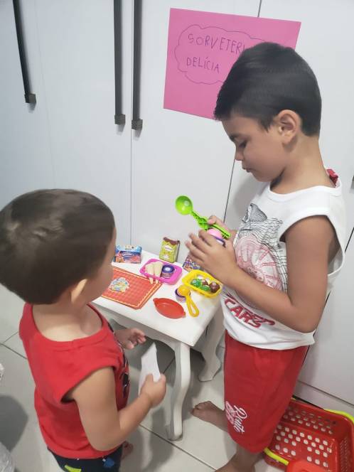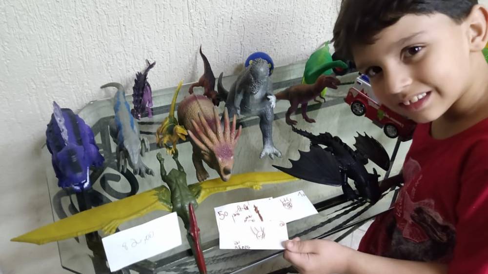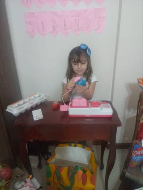 Na Escola Infantil do CENSA, ludicidade e aprendizado estão juntos e misturados! Na atividade de sexta-feira, 11 de setembro, o 3º período montou uma loja de "mentirinha". Confeccionando as cédulas e moedas, as crianças fizeram "grandes negócios", envolvendo toda a família na prática de compra e venda, trabalhando valores monetários, realizando cálculos e desenvolvendo o raciocínio lógico.