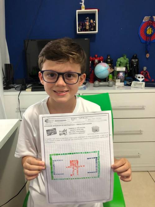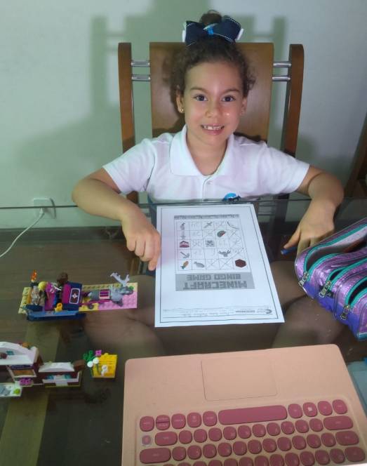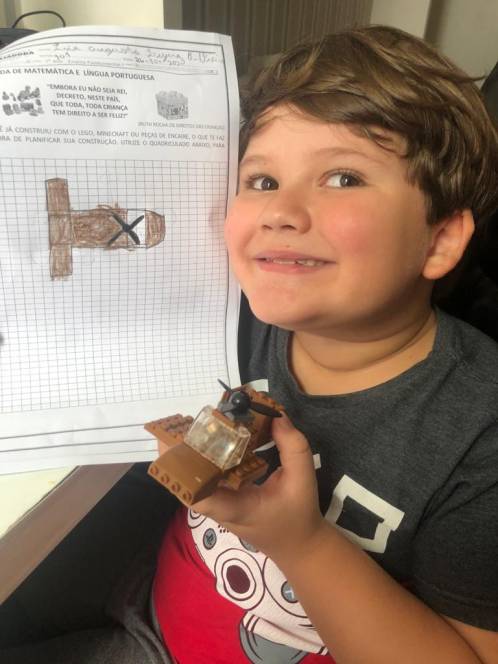Também participando do "Matematicar", o 1º ano fundamental do CENSA desenvolveu uma série de atividades no dia 26 de outubro. Partindo do livro "Ser feliz é direito da criança", de Ruth Rocha, a galera se questionou: "O que te deixa feliz?", "Quem te deixa feliz?" As respostas se transformaram em planilhas utilizando Lego, Minecraft, folha quadriculada e peças de encaixe. Depois disso tudo, desfrutaram do jogo educativo Bingo Game.