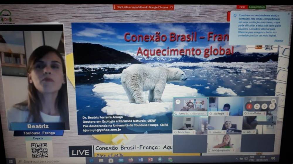 O 3º período da Escola Infantil do CENSA participou da palestra Conexão Brasil-França: aquecimento global. Tendo à frente a bióloga doutora em Ecologia e Recursos Naturias Beatriz Ferreira Araújo, a criançada embarcou num viagem ao velho mundo, conhecendo as mudanças ocorridas ao longo dos anos e conhecendo os desafios que temos com o aquecimento global. Questionamentos como "Como a vida atual afeta o futuro da sobrevivência da nossa civilização?", "O que podemos fazer para mudar?" fizeram parte do rico bate papo com a convidada.