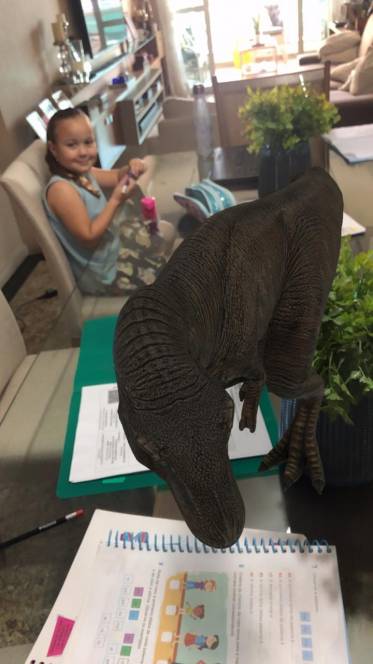 Sistematizando a letra V, o 3º período da Escola Infantil do CENSA decidiu fazer uma "Viagem de Volta". E o local escolhido foi o mundo dos dinossauros! Após uma vídeo aula contextualizando a existência da espécie jurássica, os alunos registraram a aprendizagem numa atividade impressa e, por fim, experimentaram a realidade aumentada, no aplicativo do Google que projeta imagens em 3D, no próprio ambiente. Foi um sucesso!