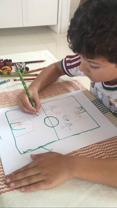 O Projeto "Esporte é vida", desenvolvido pelo 2º período do CENSA, tem gerado dinâmicas interessantes e bem ecléticas. Entrando no clima, os alunos participaram da aula online caracterizados, com acessórios e uniformes mostrando o esporte de preferência. Depois de um alongamento, partiram para as obras de Portinari e Ivan Cruz, conhecendo as criações desses grandes artistas sobre o tema. Por fim, fizeram seus próprios registros, em folha canson.
