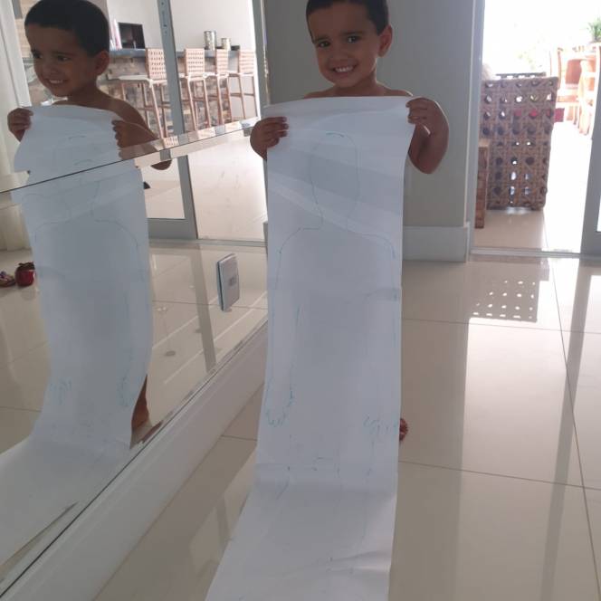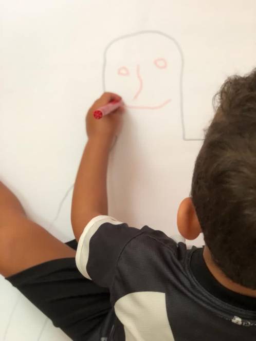 O maternal da Escola Infantil do CENSA está focada em atividades corporais e, para isso, destinou a semana de 9 a 13 de setembro para diferentes dinâmicas. Seguindo um dos princípios de método MOntessori, do concreto ao abstrato, a criançada realizou o mapeamento corporal, reconhecendo e nomeando as partes do corpo. Com a ajuda dos papais e mamães, responsáveis pelo desenho da silhueta, os pequenos atribuíram detalhes, percebendo sua própria imagem.