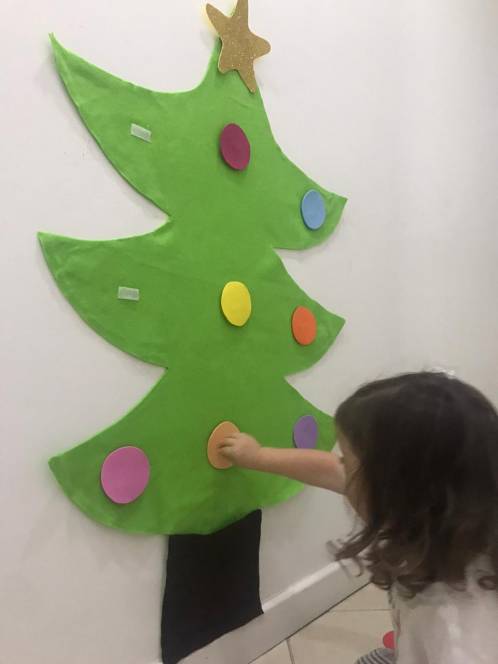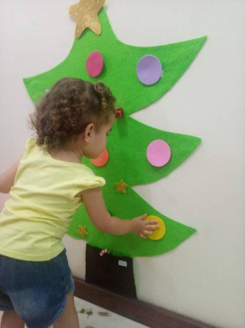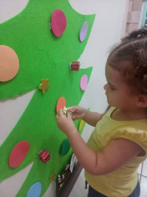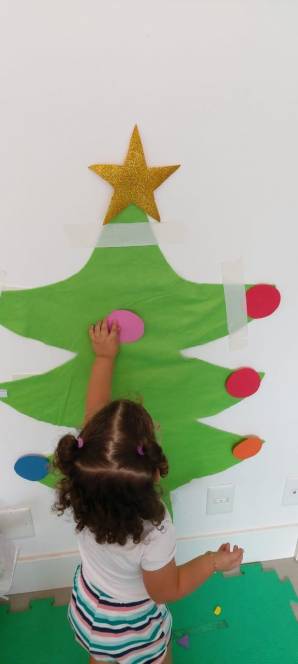 Entrando no clima de Natal, a sexta-feira, 13 de novembro, foi dia de confeccionar a árvore! Utilizando a Árvore de Natal Sensorial, um dos diversos itens recebidos no kit escolar, o Pré-maternal da Escola Infantil do CENSA usou a criatividade para enfeitar, à sua maneira, o tradicional símbolo natalino e colocá-lo no local de preferência da casa. Colando e descolando as bolas, o jogo permite que o alunos mudem a decoração várias vezes, estimulando a independência e autonomia. "Além de conhecer um dos mais populares símbolos da celebração cristã, a atividade permite que os pequenos recordem as cores trabalhadas e desenvolvam a motricidade fina", disse a professora Anna Luiza Barroso.