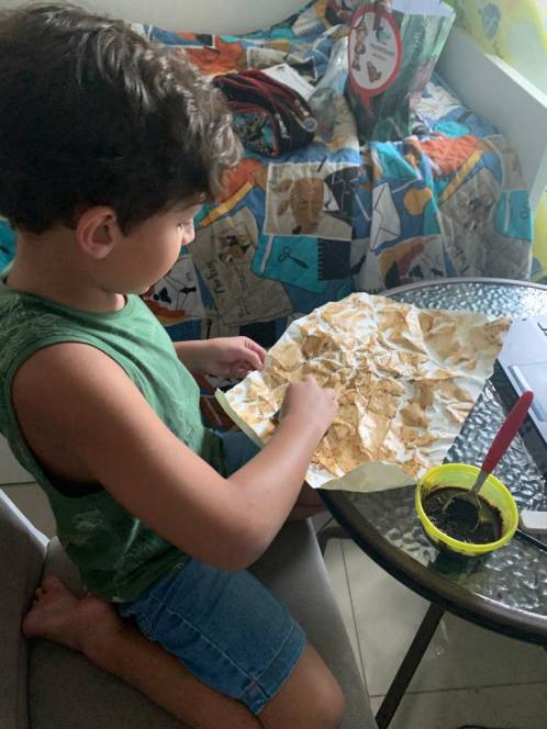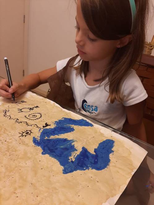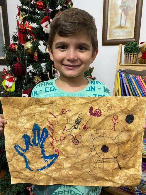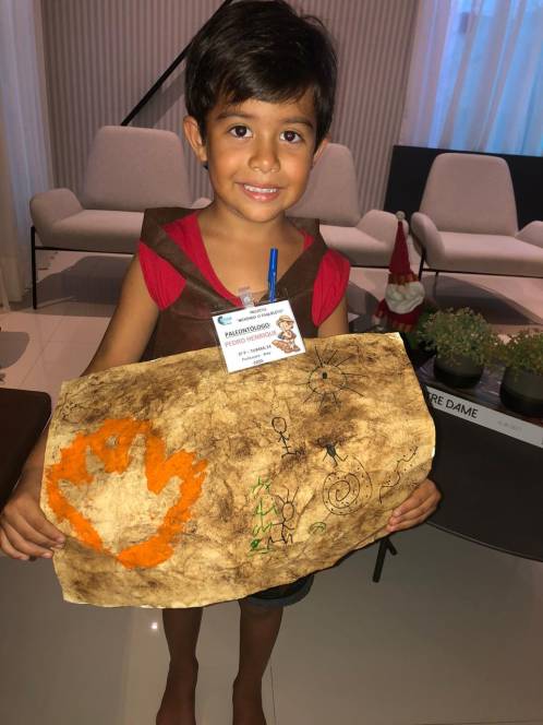 Embalados na era pré histórica e evolução das espécies, o 3º período da Escola Infantil do CENSA conheceu a arte rupestre, nas aulas virtuais de 1º de dezembro. Estudando seu significado e importância, os alunos conheceram a forma de comunicação da época, com registros do cotidiano de luta, caça, festas e até mesmo da família, realizada nas rochas, no interior das cavernas. Empolgados, partiram para as próprias obras usando papel canson, borra de café como tinta orgânica e muita criatividade.Ao final, deram divertidos nomes como "A terra dos pré-históricos", "O mundo que eu não vi" e até mesmo "Era Mesozóica".