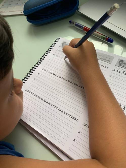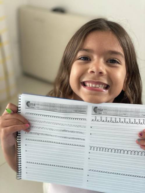 O 1º ano fundamantal do CENSA iniciou a aprendizagem da letra cursiva, na terça-feira, 9 de março, realizando atividades de guirlandas, base do estilo da escrita manual.