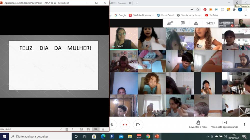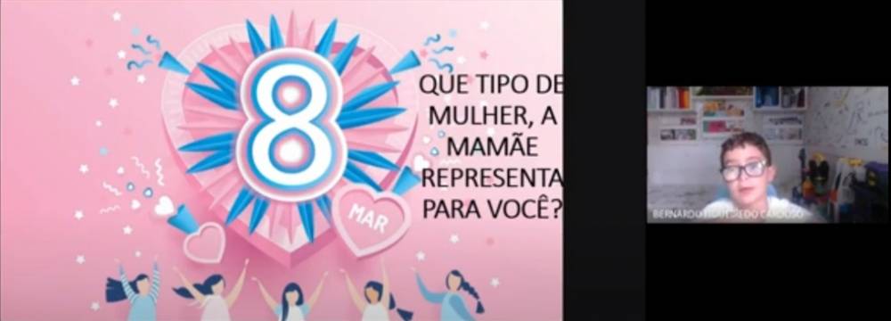 O 1º ano fundamental do CENSA homenageou o Dia da Mulher, 8 de março, com uma acolhida especial. O encontro começou com a música "Aos olhos do Pai" e, em seguida, um vídeo do poeta Braulio Bessa, "Um só dia...". Registrando nos cadernos, os alunos desenharam as próprias mães, deixando fluir como a vêem e definem. Foi um momento único, de grande carinho para aquelas que inspiram, educam e cuidam.