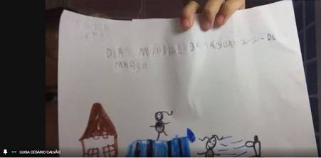 Conscientizar nossos pequenos sobre a importância do uso responsável da água é uma constante no CENSA. Em mais um debate sobre o tema, o 1º ano fundamental participou de uma série de atividades no dia 22 de março. A aula começou com o filme "O camelo, o burro e a água", de Sérgio Merli. Os pequenos conversaram sobre a mensagem proposta, representaram em desenho e finalizaram o encontro virtual assistindo um musical infantil." Segundo a Declaração Universal dos Direitos da Água, divulgado pela ONU, a água não é somente herança de nossos predecessores; ela é, sobretudo, um empréstimo aos nossos sucessores". lembra a professora Ellen Belliene.