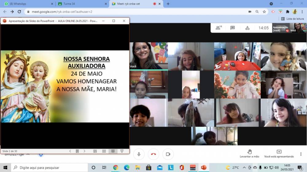 O Dia de Nossa Senhora Auxiliadora, 24 de maio, foi comemorado pela Escola Infantil do CENSA de forma muito especial. Orações, músicas e singelas coroações marcaram a data, nas aulas online, em momentos de gratidão e devoção à Mãezinha do Céu.
