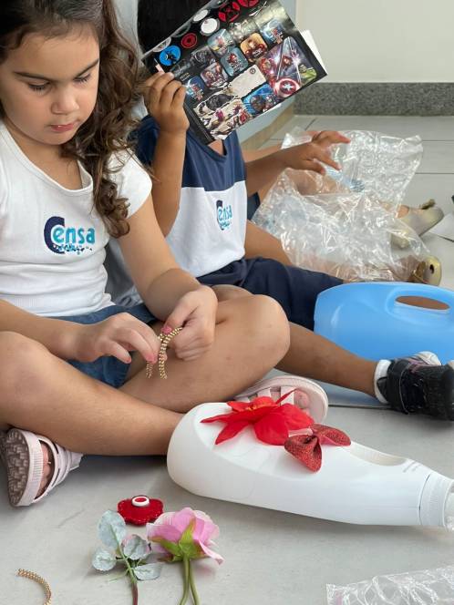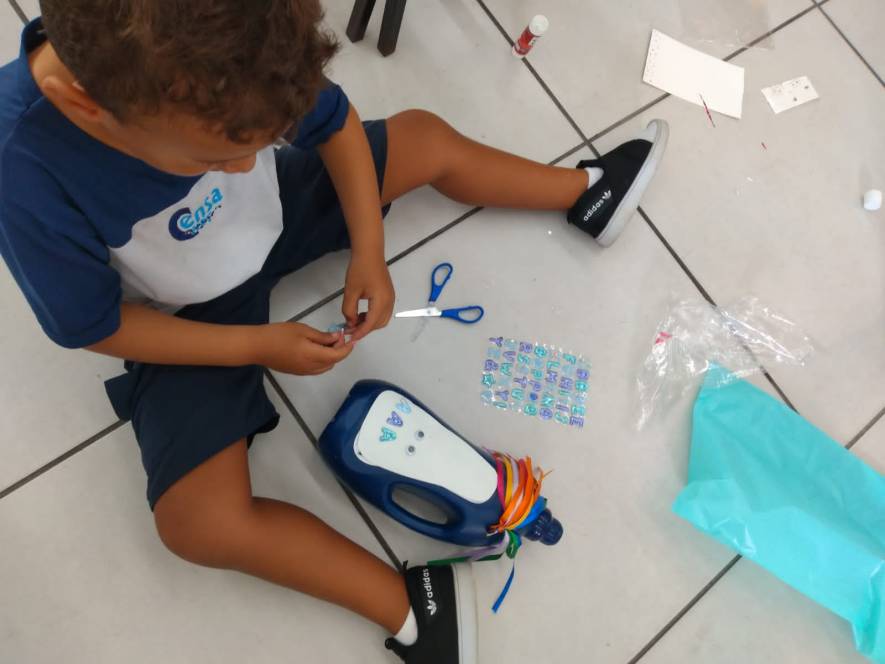 O 2º período da Escola Infantil do CENSA participou de uma atividade maker, na segunda-feira, 2 de maio. Inspirados no livro "A professora e o regador mágico", adotado no Programa de Leitura, os pequenos confeccionaram seus próprios regadores, utilizando garrafas plasticas e decorando com adesivos, palito de picolé, pompons coloridos e laços. Mostrando criatividade de sobra, os alunos exibiram com orgulho suas obras. "A cultura maker na educação infantil ajuda na formação da motricidade, estimula a criatividade e o espírito colaborativo", explica a professora Juliana Carneiro.