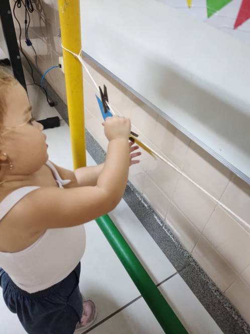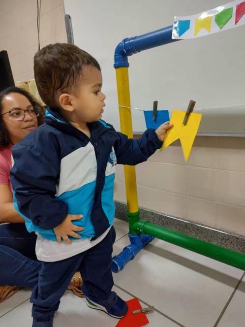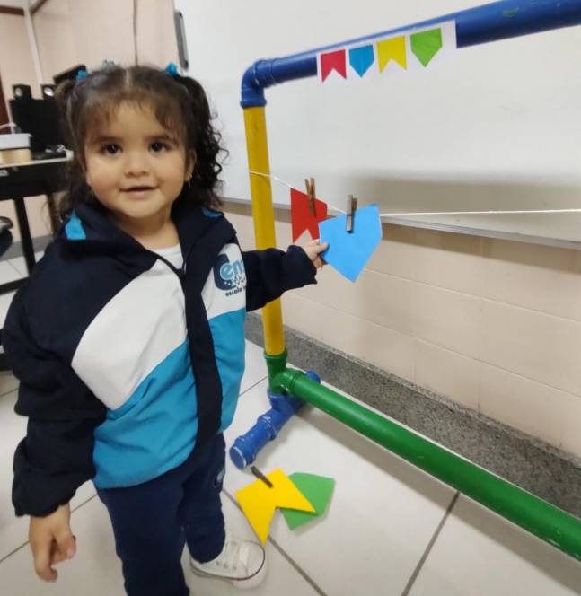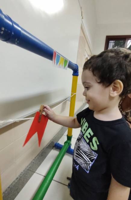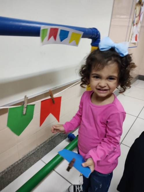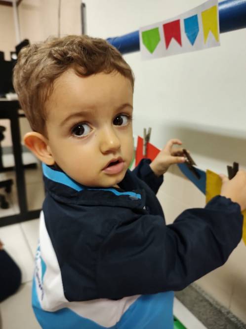 Em ritmo de festa junina, o pré-maternal da Escola Infantil do CENSA realizou a dinâmica das cores. A atividade aconteceu na sexta-feira, 3/06. A criançada analisou as características das bandeirinhas, como as cores e as formas, e, seguindo o referencial solicitado, organizou-as em um varal.