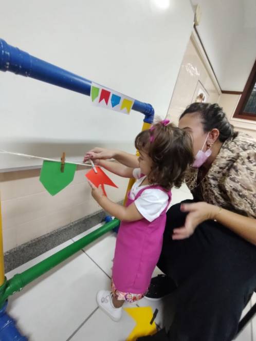 - Entramos no clima do Arraiá CENSAcional trabalhando cores, sequência e motricidade fina! - disse a professora Thallyana Paiva.