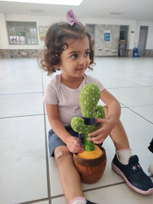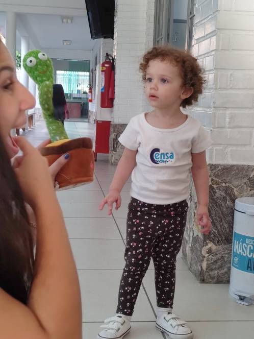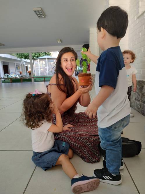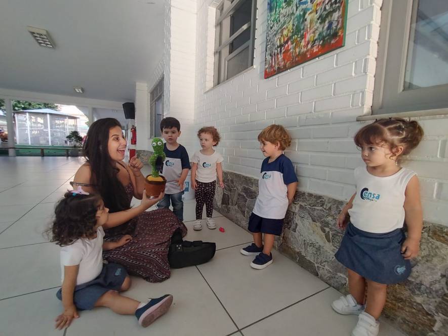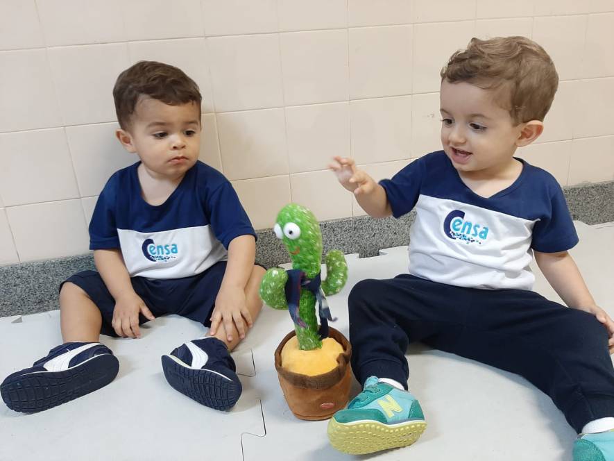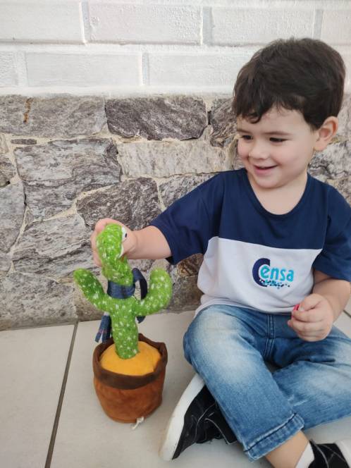 O pré-maternal da Escola Infantil do CENSA recebeu a visita do Cacto Dançante, na quinta-feira, 9/06. Divertidíssimo, o mais novo colega divertiu os pequenos que não se cansaram de fazê-lo repetir as palavras que ditavam. A brincadeira ainda incluiu várias cantigas e muita dança. "A atividade estimulou a linguagem e oralidade das crianças, integrando o desenvolvimento de habilidades essenciais para a faixa etária e ludicidade", disse Liliana NOgueira, coordenadora do segmento.