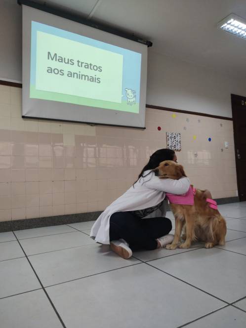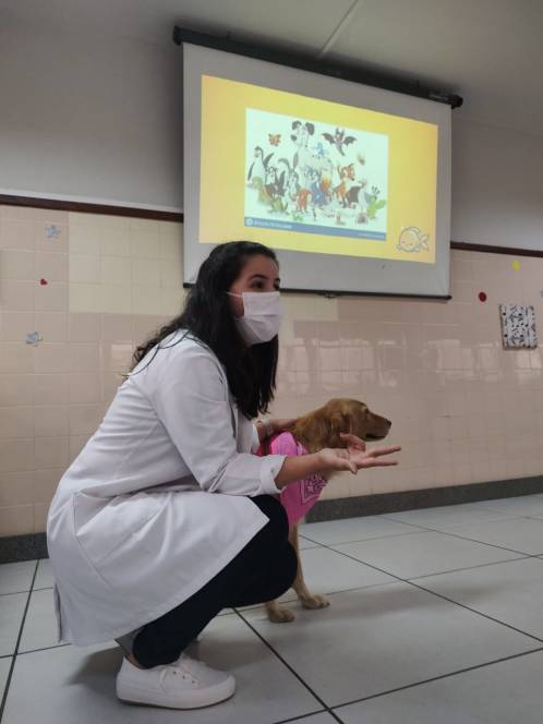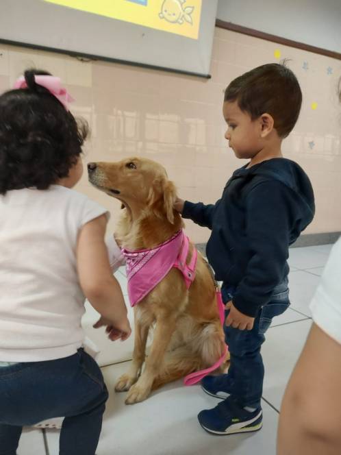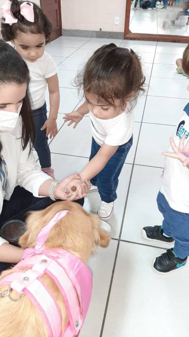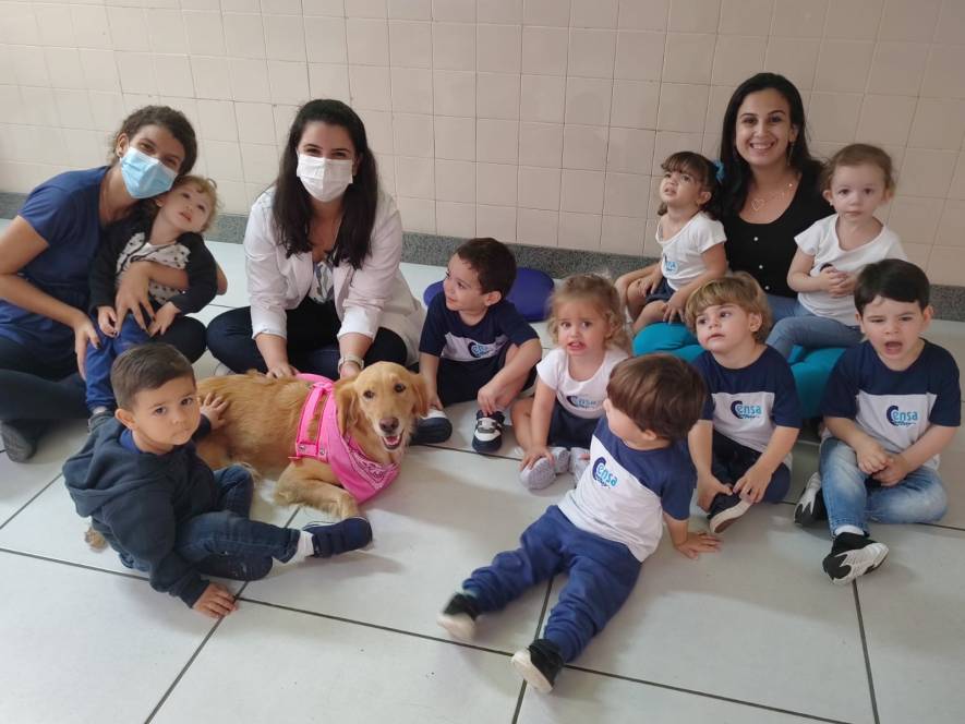 O Pré maternal da Escola Infantil do CENSA recebeu a veterinária Brunna Lima, na segunda-feira, 8 de agosto. A visita ilustrou o projeto "Por uma ecologia integral: o cuidado com os animais", desenvolvido atualmente pelos alunos. Acompanhada do seu pet da raça Golden, a convidada bateu um papo sobre a importância do zelo com os animais, como respeitar suas características e cuidados simples e adequados ao animalzinho de estimação. "Os pequenos adoraram a interação com Dra Brunna e seu pet. A visita foi enriquecedora para o nosso projeto!", falou a professora Thallyanna Paiva.