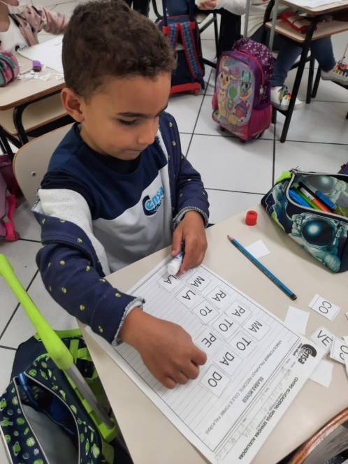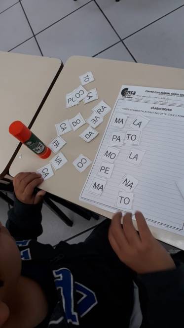 Muito utilizado pela Escola Infantil do CENSA como instrumentos facilitadores de aprendizagem, os jogos pedagógicos motivam os alunos e promovem uma aula criativa. Na quarta-feira, 24/08, o 3º período participou do Jogo das Sílabas. A dinâmica consistia em recortar, embaralhar, montar e ler as palavras montadas, trabalhando a consciência silábica. "Esta habilidade é fundamental no processo de alfabetização, pois desenvolve a percepção de que as sílabas são compostas por sons e a palavra escrita tem relação com a fala", explicou a coordenadora Liliana Nogueira.