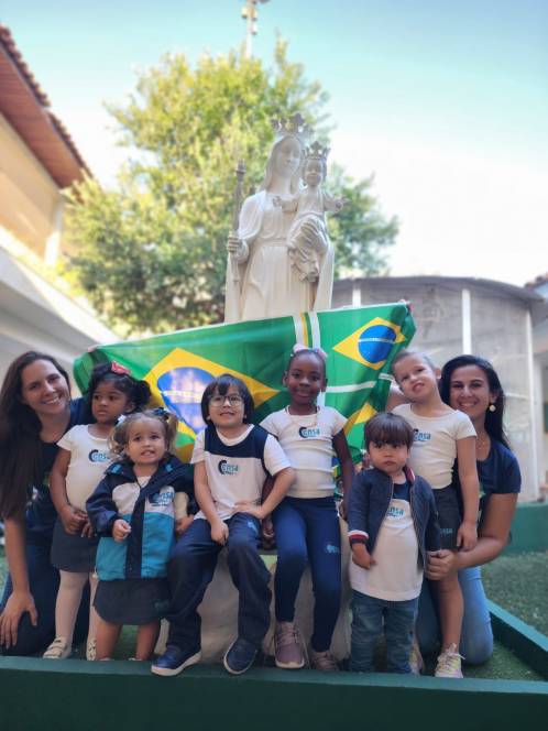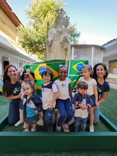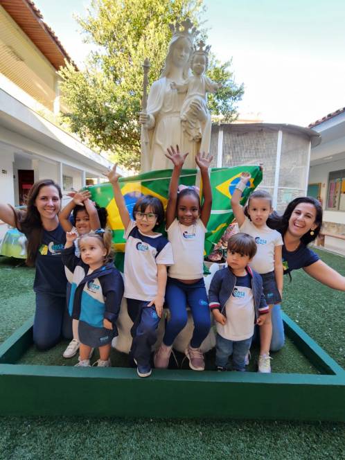 A Escola Infantil do CENSA comemorou os 200 anos da Independência do Brasil, na terça-feira, 6/09. Reunidos na área comum, os alunos assistiram a um vídeo explicativo, participaram de um quiz, fizeram uma oração pelo país e finalizaram cantando o hino nacional. Um lindo painel apresentou as criações dos pequenos, com desenhos e frases retratando seus desejos para o povo brasileiro. "Quanto mais as crianças conhecerem, aprofundarem e estudarem sobre as riquezas do nosso país, mais irão encantar-se por ele. Queremos que, desde pequenos, sejam semeadores de um Brasil muito melhor!", disse a coordenadora Liliana Nogueira.