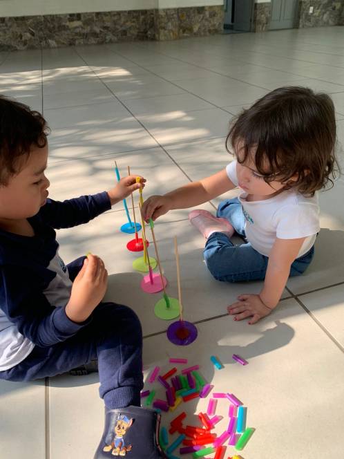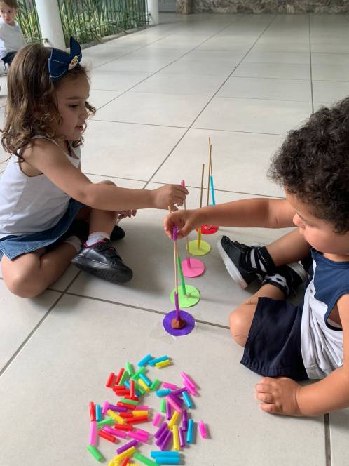 Aprendendo as cores, o Maternal da Escola Infantil do CENSA participou de uma série de estratégias pedagógicas com esse objetivo, na semana de 12 a 16 de setembro. Dentre as atividades, o jogo do lego colorido e o de canudos foi o preferido! "Através das cores trabalhamos a criatividade, a imaginação e a correspondência", explicou a coordenadora Liliana Nogueira.