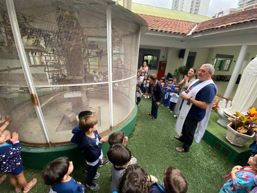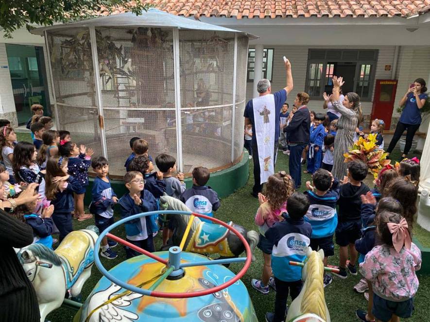 O CENSA comemorou São Francisco de Assis na terça-feira, 4 de outubro. Admirado pelos católicos e reconhecido como protetor dos animais e padroeiro da ecologia, São Francisco foi lembrado pelos crianças por seu amor à natureza. Sob os olhares atentos dos pequenos, Pe. Murialdo Gasparet deu a bênção às calopsitas da Escola Infantil e, a seguir, abençoou os pets trazidos pelos familiares e alunos.
