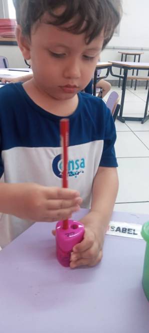 O 1º período da Escola Infantil do CENSA teve seu primeiro contato com o apontador de lápis, na terça-feira, 18/10. A tarefa, embora simples e prática, é uma atividade psicomotora que representa o desenvolvimento da motricidade fina, só possível após a criança ter dominado os movimentos ligados aos grandes músculos. Empolgada com a nova aprendizagem, a garotada deu mais um passo na conquista da coordenação de suas habilidades manuais e, agora, passa do uso do hidrocor para o lápis de escrever. Parabéns!