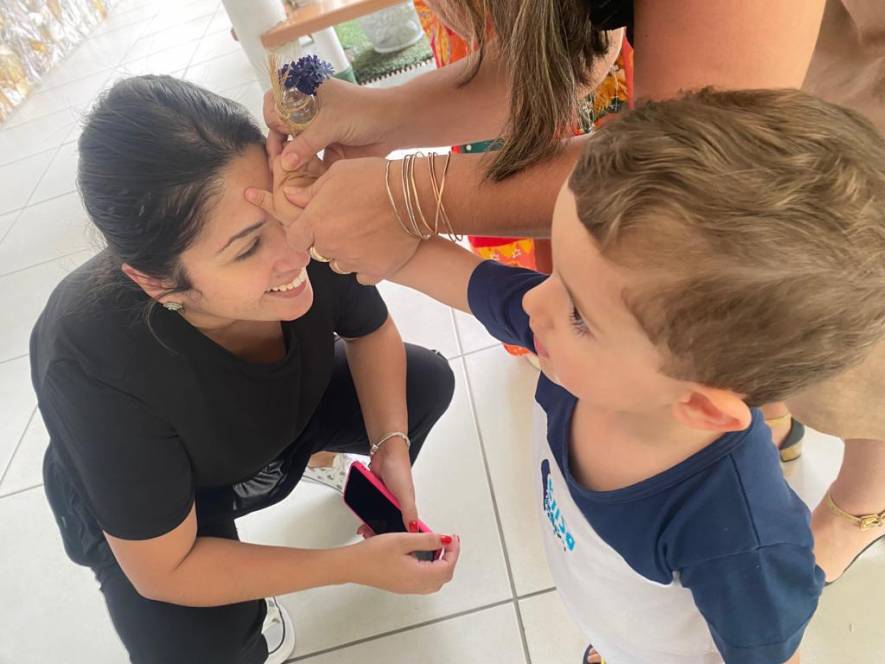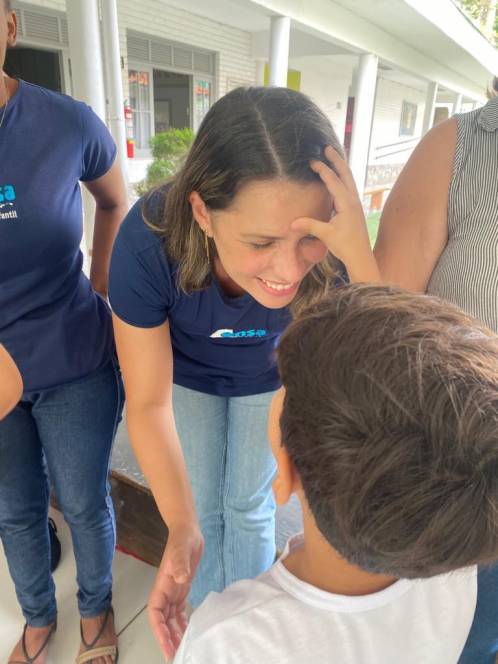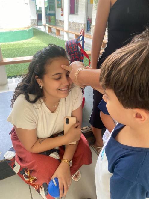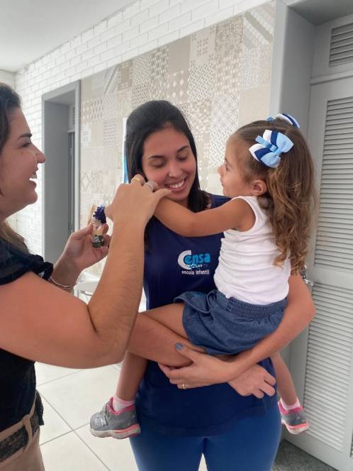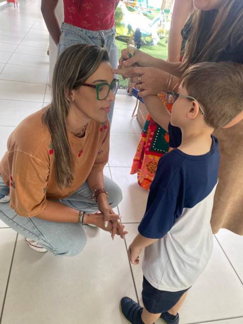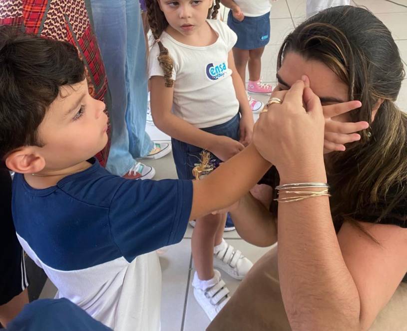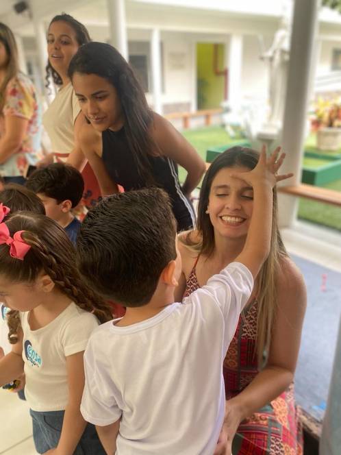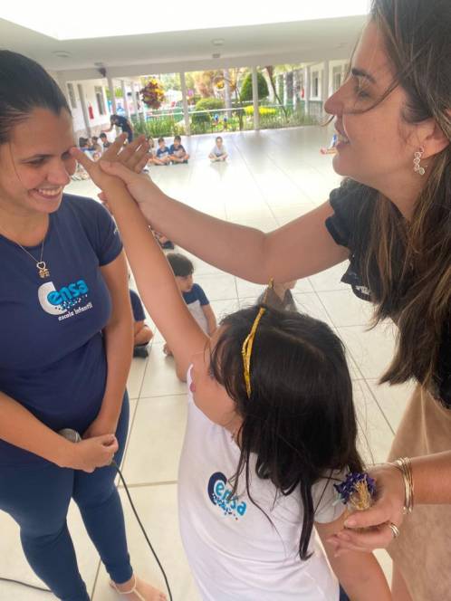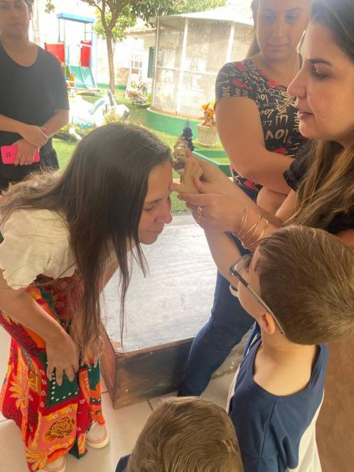 A acolhida da Escola Infantil do CENSA na segunda-feira, 17/10 foi especial. Em homenagem ao Dia do Professor, os pequenos abençoaram as queridas "tias" mostrando o quanto são importantes e queridas. "Foi um momento emocionante de oração e fé com as crianças, protagonistas da nossa missão educativa", disse a coordenadora Liliana Nogueira.