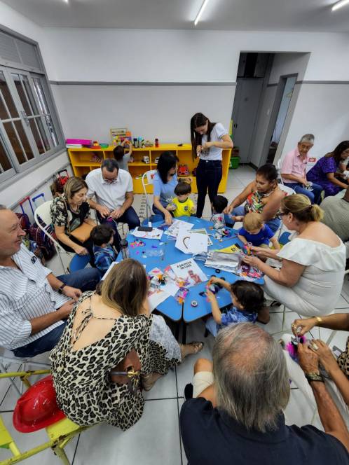 O projeto "Brincar e falar é só começar", desenvolvido atualmente pelo Maternal da Escola Infantil do CENSA, organizou um lindo encontro, na quinta-feira, 20/10: o "Avós na escola". Os vovôs e vovós foram recebidos com alegria, para uma tarde de interação e homenagens carinhosas. Partilha de brincadeiras antigas, atividade maker e apresentação dos alunos caracterizados com a personalidade dos respectivos avós, emocionaram os convidados e mostraram o quanto eles são queridos e importantes no crescimento das crianças. Um gostoso lanche finalizou essa partilha tão rica para todas as gerações!