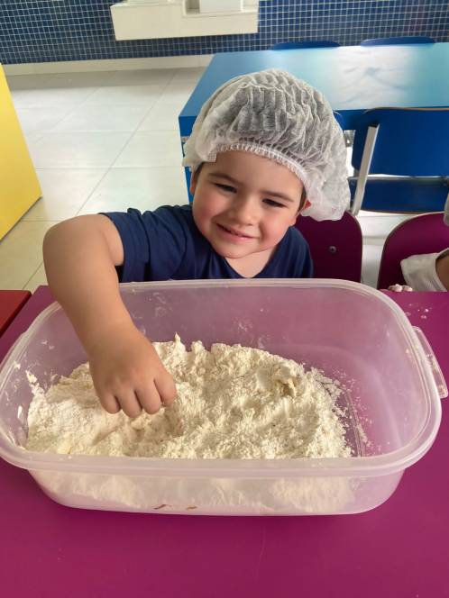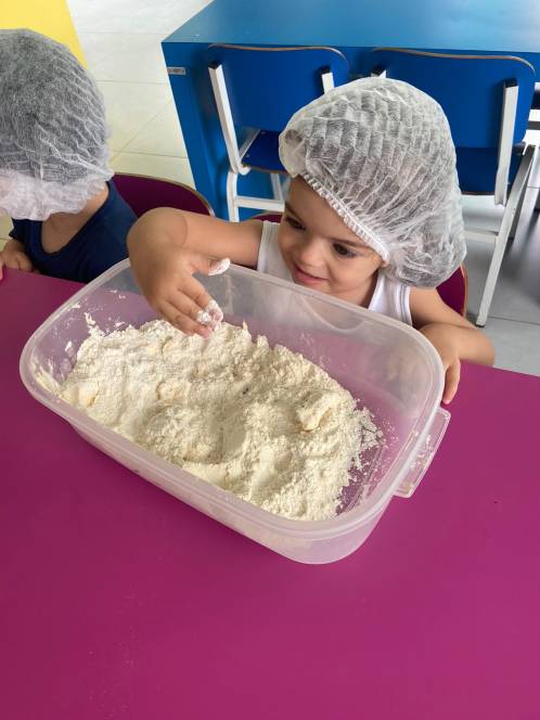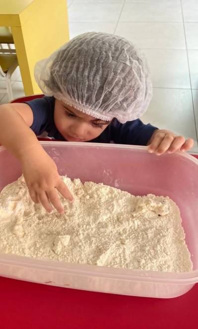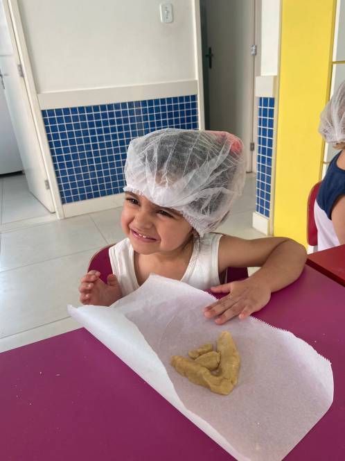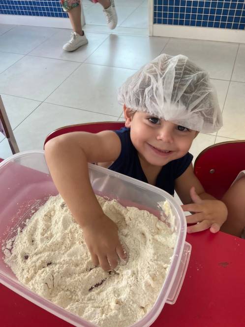 Na segunda-feira, 7/11, o Pré-maternal da Escola Infantil do CENSA fez uma deliciosa receita de biscoito... de letras! Após misturar os ingredientes seguindo as instruções das professoras, os alunos modelaram a massa com a inicial do próprio nome. Além de dar os primeiros passos no letramento, a dinâmica trabalhou o aspecto sensorial de forma significativa. Depois foi só saborear a delícia!